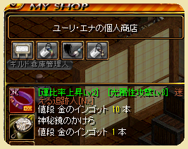 お友達の桜さんが運比1/2追跡人Nxを条件付きで格安の8本で譲ってくれるという話になりました。その条件というのが、鏡に挑戦すること。ギルメンのゆゆさんが神秘鏡を露店で安く出してたので、それを買ってトライしました。